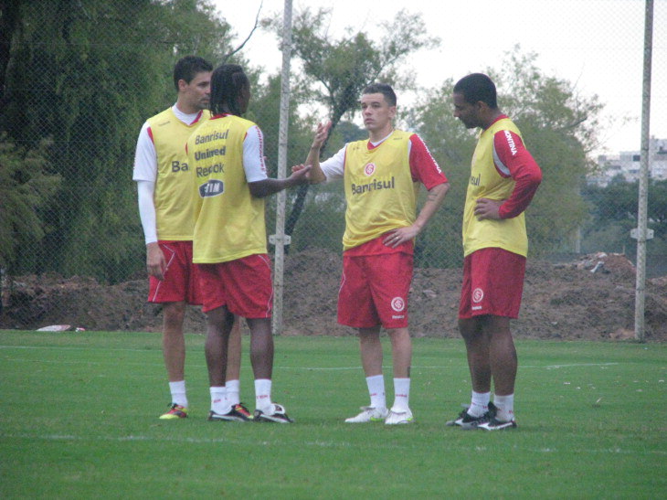 Falcão promoveu o primeiro coletivo aberto para a imprensa na tarde desta quinta-feira. Depois de 30 minutos de correria, um pequeno intervalo. Em uma pequena pausa, os jogadores debatiam entre si as mudanças do professor. Buscavam corrigir posicionamento e entender as jogadas ensaiadas.